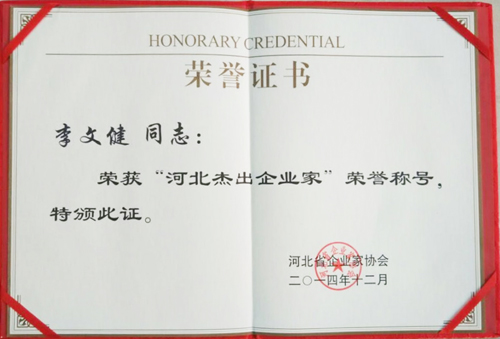在河北省企業(yè)家協(xié)會成立三十周年之際,為了弘揚(yáng)企業(yè)家精神,協(xié)會在會員中評選出129名“河北杰出企業(yè)家”,以表彰他們在河北經(jīng)濟(jì)建設(shè)中作出的巨大貢獻(xiàn),展示企業(yè)家在經(jīng)濟(jì)發(fā)展方式轉(zhuǎn)變中的重要作用。