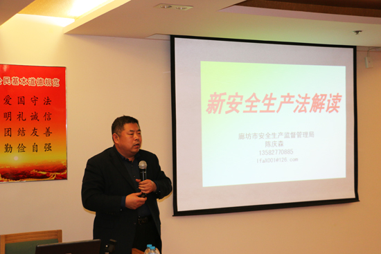 1月6日下午,中太建設(shè)集團(tuán)新《安全生產(chǎn)法》宣貫會(huì)在中太大廈17樓舉行,邀請(qǐng)廊坊市安全協(xié)會(huì)秘書(shū)長(zhǎng)陳慶森老師現(xiàn)場(chǎng)授課,集團(tuán)公司董事長(zhǎng)燕振義、執(zhí)行總裁張明禮及其他在家高管出席會(huì)議,副總裁同歲虎主持會(huì)議。陳慶森老師以大量鮮活案例為切入點(diǎn),結(jié)合新《安全生產(chǎn)法》的具體內(nèi)容,對(duì)比新舊兩版《安全生產(chǎn)法》的相同之處和不同之處,深刻剖析《安全生產(chǎn)法》改版的意義。陳慶森老師指出,要讓安全生產(chǎn)的理念回歸教育本質(zhì),從娃娃抓起,從身邊百姓抓起,讓每個(gè)人提高安全意識(shí),規(guī)范生產(chǎn)生活中的各種行為,才能使得安全生產(chǎn)現(xiàn)狀得到有效改善,才能保障社會(huì)生產(chǎn)生活的有序進(jìn)行。