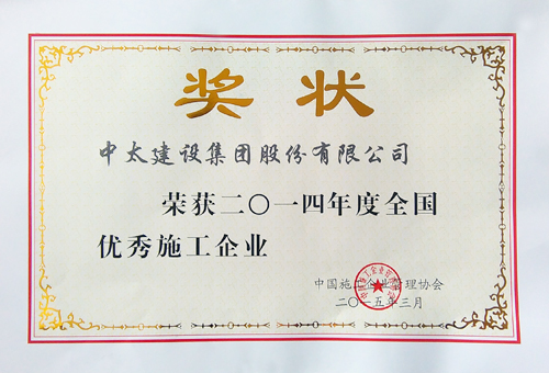 近日,由中國施工企業(yè)管理協(xié)會傳來喜訊,中太建設(shè)集團被評為“2014年度全國優(yōu)秀施工企業(yè)”。
