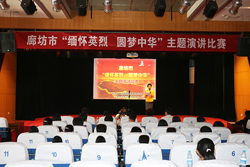 6月24日上午,由廊坊市國防辦主辦、中太建設(shè)集團(tuán)協(xié)辦的廊坊市“緬懷英烈 圓夢中華”主題演講比賽在中太大廈二樓報告廳舉行,中太建設(shè)集團(tuán)員工陳東宏與來自廊坊各縣市區(qū)、市直單位的18名選手展開激烈角逐,最終以99.33分的高分榮獲演講比賽的一等獎。