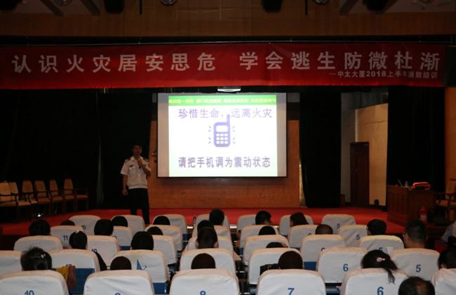 5月25日上午,中太大廈2018年度上半年消防培訓(xùn)在二樓報告廳舉行,邀請中國安全健康教育網(wǎng)河北站高級宣教員程軍老師,為大家?guī)硪粓鼍实南乐R講座。