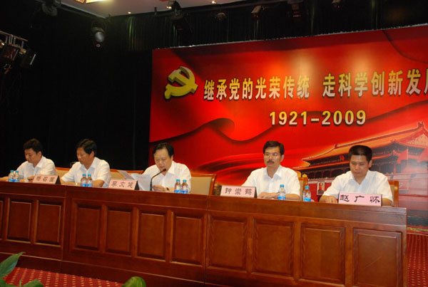 黨委副書記鐘崇鶴宣讀了2008年度“一先三優(yōu)”表彰決定。然后,李文健、鐘崇鶴、楊召國、趙廣懷、梅興元分別為受表彰單位和個人頒獎。李春陽等6名新黨員面對黨旗,舉行了新黨員入黨宣誓?偛俊⒏骷瘓F(板塊)機關全體黨員及所屬各黨支部班子成員、部分黨員、管理人員200多人參加了表彰大會。會議采取以演唱歌頌黨的革命歌曲為主要內容、邊頒獎邊演出文藝節(jié)目的形式,將大會推向了一個高潮,受到了大家的歡迎和贊揚。