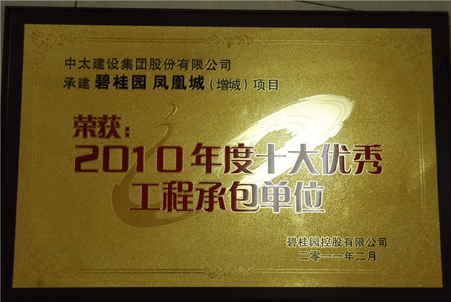 近日,集團(tuán)公司廣州工程一局鳳凰城項(xiàng)目部被碧桂園集團(tuán)評為“創(chuàng)優(yōu)100”項(xiàng)目部,同時獲得該集團(tuán)“2010年度十大優(yōu)秀工程承包單位”榮譽(yù)。
