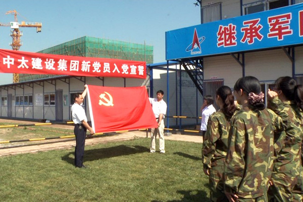 7月3日上午9點(diǎn),中太建設(shè)集團(tuán)黨委在安瑞科項(xiàng)目工地舉行新黨員入黨宣誓儀式。在鮮紅的中國(guó)共產(chǎn)黨黨旗面前, 16名新黨員整齊排列成行,舉起右手,握拳過肩,莊嚴(yán)宣誓,表達(dá)了為共產(chǎn)主義事業(yè)奮斗終身的決心。集團(tuán)黨委副書記鐘崇鶴參加宣誓儀式并講話。他代表集團(tuán)黨委向全體新黨員表示祝賀,并提出了明確的要求和希望。他希望新黨員同志們不要辜負(fù)黨組織的期望,牢記入黨誓言,牢記全心全意為人民服務(wù)的宗旨,發(fā)揚(yáng)黨的優(yōu)良傳統(tǒng)和作風(fēng),在“創(chuàng)先爭(zhēng)優(yōu)”活動(dòng)中,在各自的工作崗位上,熱愛本職、學(xué)習(xí)本領(lǐng),努力工作,發(fā)揮好黨員的先鋒模范帶頭作用,為黨的事業(yè)和中太的發(fā)展做出自己新的、更大的貢獻(xiàn),以更加優(yōu)異的成績(jī),喜迎黨的十八大的勝利召開,無(wú)愧于共產(chǎn)黨員的光榮稱號(hào)!