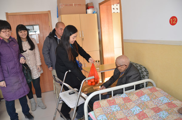 11月29日上午,在集團(tuán)工會(huì)副主席張娟娟的帶領(lǐng)下,中太建設(shè)集團(tuán)的12名團(tuán)員青年代表,驅(qū)車來到中太康復(fù)醫(yī)院慰問老人、送去愛心,并給老人帶去新鮮的水果。到達(dá)醫(yī)院后,他們?cè)诳祻?fù)醫(yī)院醫(yī)護(hù)人員的陪同下,進(jìn)入病房與老人談心聊天,了解老人的吃住情況,并像醫(yī)護(hù)人員了解老人的住院治療情況,宛如一家人一般,一時(shí)間房間里充滿了濃濃親情。