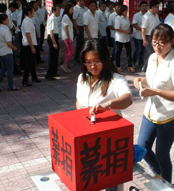 8月6日上午,三河分公司發(fā)揚(yáng)“一方有難,八方支援”的精神,弘揚(yáng)“為社會(huì)盡責(zé)”的企業(yè)使命,開展了以“人人獻(xiàn)愛心、處處見真情”為主題的捐款活動(dòng),為魯?shù)檎饏^(qū)同胞伸出援助之手,獻(xiàn)出一份愛心,表達(dá)一份真情。據(jù)統(tǒng)計(jì),三河分公司累計(jì)捐款達(dá)50000元,已通過三河市民政局匯往災(zāi)區(qū)。