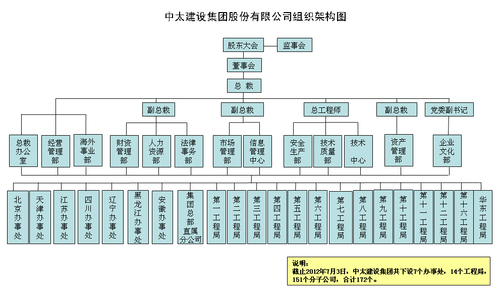 中太建設(shè)集團股份有限公司黨委始建于1985年3月,是由中國人民解放軍基建工程兵352團集體轉(zhuǎn)業(yè)后、經(jīng)中共廊坊市委批準設(shè)立的,名稱為“中國共產(chǎn)黨廊坊市建筑工程總公司委員會”,后更名為“中國共產(chǎn)黨廊坊市城市建筑安裝工程一公司委員會”;2001年9月,更名為“中國共產(chǎn)黨廊坊市中太建筑安裝有限責任公司委員會”;2005年7月,更名為“中國共產(chǎn)黨中太建設(shè)集團股份有限公司委員會”,建立黨委以來共進行了七次換屆,本屆黨委于2022年9月27日選舉產(chǎn)生,黨委班子成員由7人組成,紀檢班子成員由5人組成。其中設(shè)立黨委書記1人,黨委副書記1人,委員5人;紀委書記1名。集團黨委隸屬于廊坊市國資委黨委,集團黨委下設(shè)基層黨組織13個,共有黨員424人。 截止2024年12月31日,集團黨委隸屬于廊坊市國資委黨委領(lǐng)導(dǎo),共有黨員399名,下設(shè)有12個黨支部。其黨組織機構(gòu)設(shè)置及人員任職情況如下: 中共中太建設(shè)集團股份有限公司委員會: 書記:李文健 副書記:胡衛(wèi)東 委員:門輝、邢旭巍、李曉輝、王連忠、劉然 中共中太建設(shè)集團股份有限公司紀律檢查委員會: 書記:李曉輝 委員:劉啟友、魏翔、段慧思、姚亮 12個黨支部分別是: 中太投資控股集團機關(guān)黨支部,書記劉啟友; 中太建設(shè)集團機關(guān)黨支部,書記李曉輝; 中太中建公司機關(guān)黨支部,書記門輝; 中太物業(yè)公司黨支部,書記付薇; 中太設(shè)備租賃公司黨支部,書記劉洪庚; 中太混凝土公司黨支部,書記姚亮; 老年康復(fù)醫(yī)院黨支部,書記段慧思; 中太(廊坊)勞務(wù)公司黨支部,書記張飛; 中太集團勞務(wù)人員黨支部,書記孫萬超; 中太退休人員第一黨支部,書記鄧啟軍; 中太退休人員第二黨支部,書記趙際榮; 中太退休人員第三黨支部,書記段慧思。 |