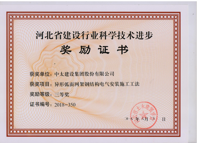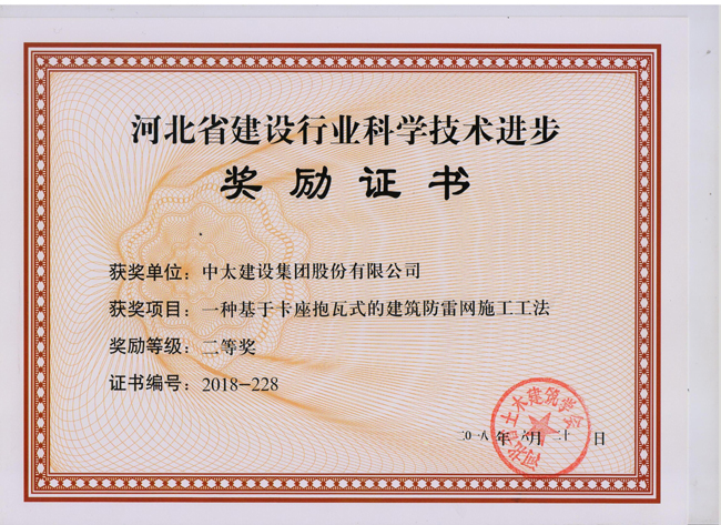 2018年河北省建設(shè)行業(yè)科學(xué)技術(shù)進(jìn)步獎(jiǎng)勵(lì)證書匯總