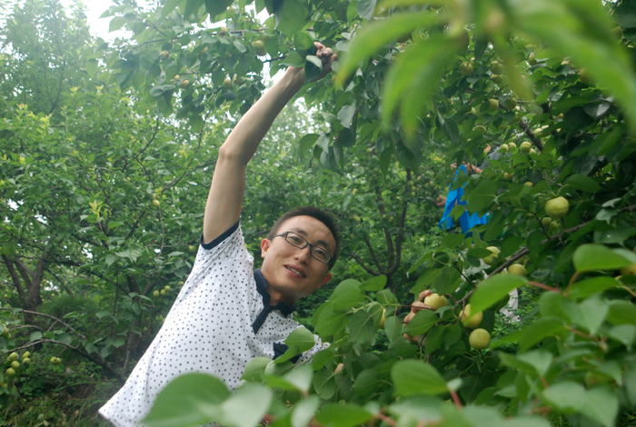 據(jù)第八工程局工作人員介紹,此采摘處約有20畝果樹林地。山上種植著杏兒、桃兒和核桃。山下院內(nèi)菜園里,種植著施用農(nóng)家肥的各類時蔬和植物。以蟲兒、草兒為食、自由散養(yǎng)的雞鴨悠閑漫步在山林中,好一派恬靜如詩、優(yōu)美如畫的田園風(fēng)光。