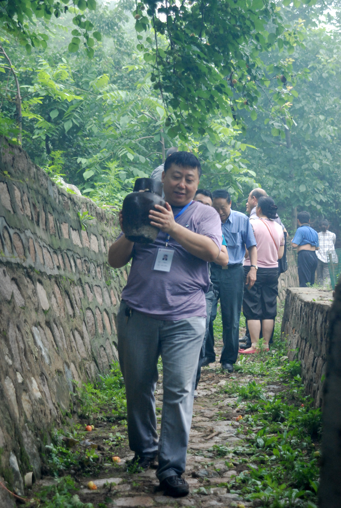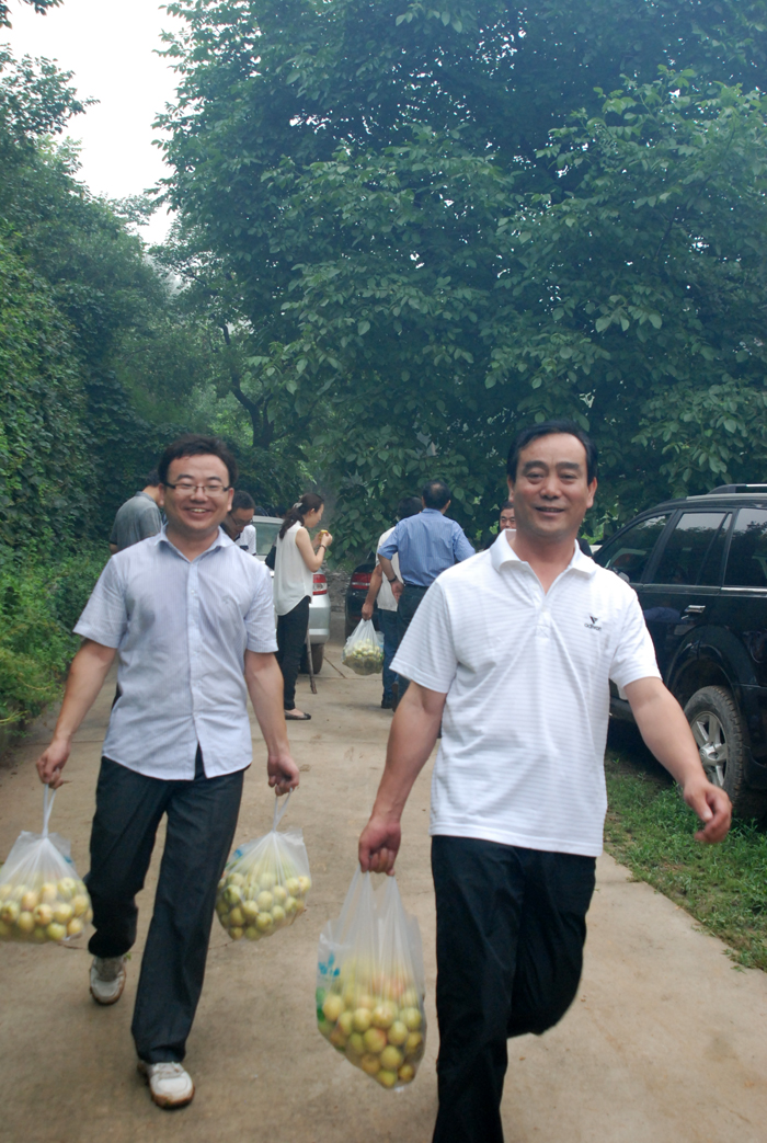 從京承高速公路下道,兩輛大巴車沿著崎嶇山路緩慢行駛。山道兩側(cè)灌木郁郁蔥蔥,置身于這天然氧吧,清新的空氣順暢地能讓人一下子呼吸到了丹田而心神氣爽。一路上,路邊采摘的果園比比皆是?諝庵心枪麑嵣l(fā)出的清香,直入心脾,令人口舌生津。