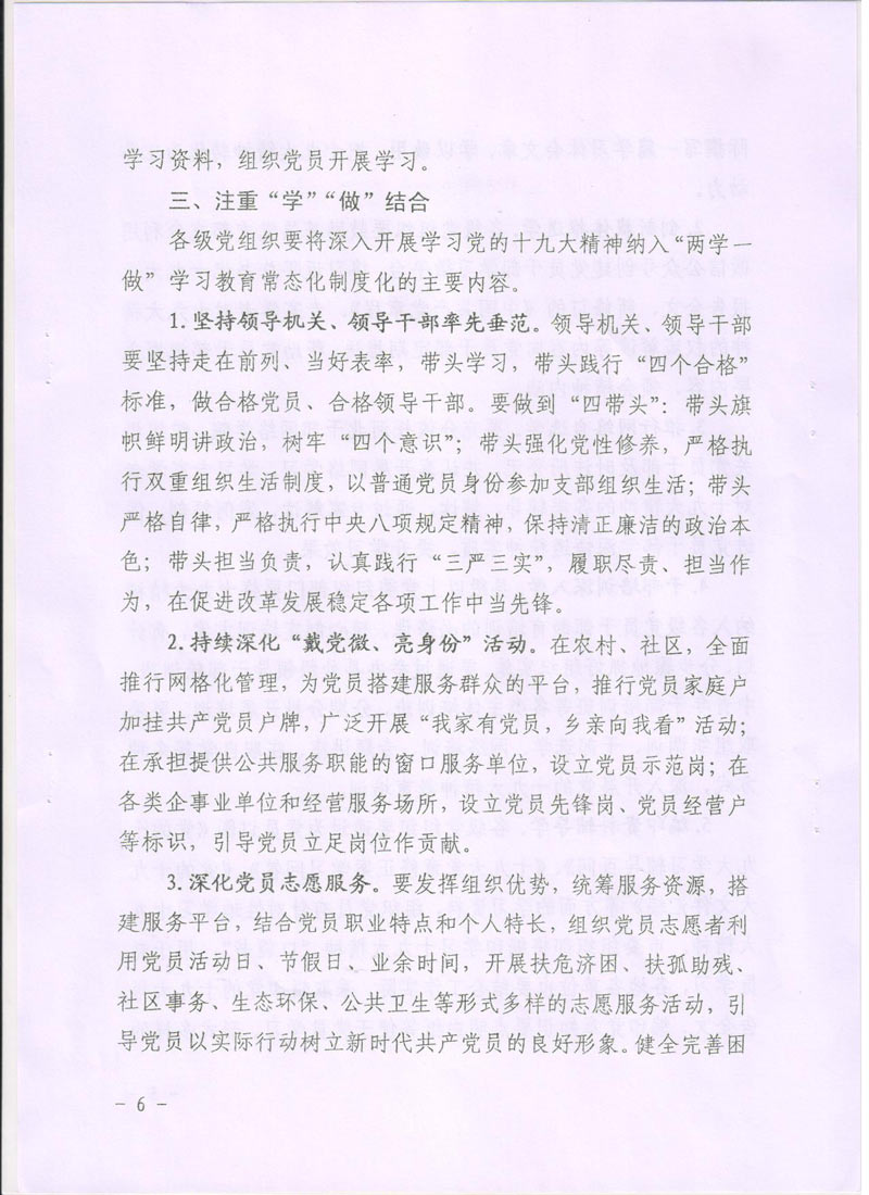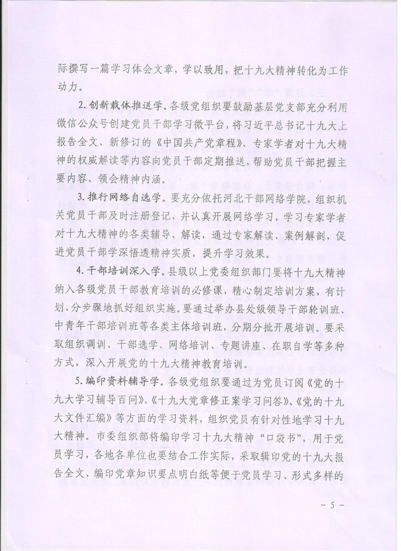 現(xiàn)將中共廊坊市委組織部《關(guān)于在推進(jìn)“兩學(xué)一做”學(xué)習(xí)教育常態(tài)化制度化中深入開展學(xué)習(xí)貫徹黨的十九大精神的通知》轉(zhuǎn)發(fā)給你們。請認(rèn)真按照通知要求,緊密聯(lián)系本單位實(shí)際,把深入開展學(xué)習(xí)貫徹十九大精神納入“兩學(xué)一做”學(xué)習(xí)教育常態(tài)化制度化,把十九大精神學(xué)深學(xué)透,全面把握十九大精神實(shí)質(zhì)。