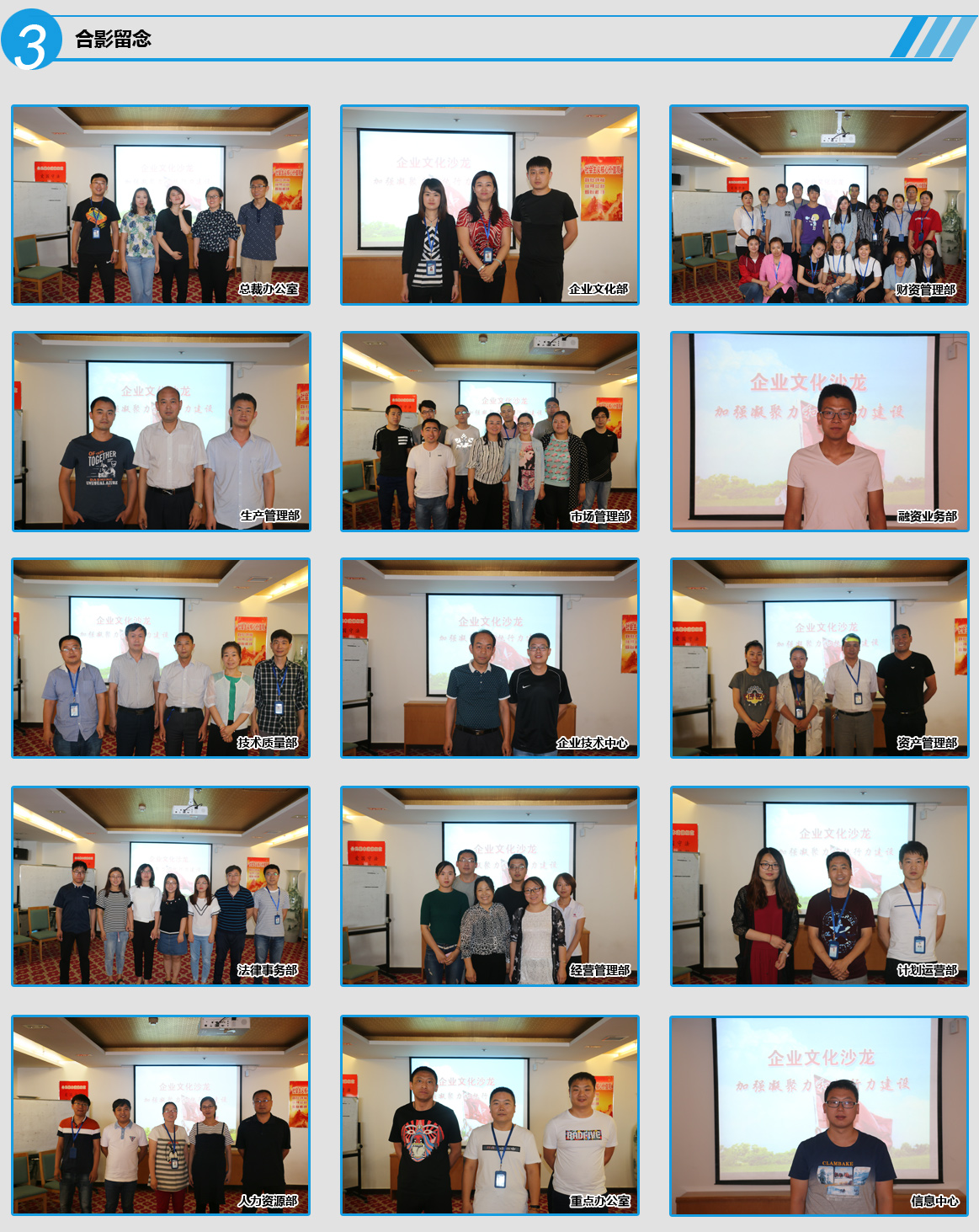 整個(gè)活動(dòng)在愉悅、和諧的氣氛中進(jìn)行,受到了廣大員工的一致認(rèn)可;顒(dòng)結(jié)束后,全體人員以部室為單位合影留念。 |